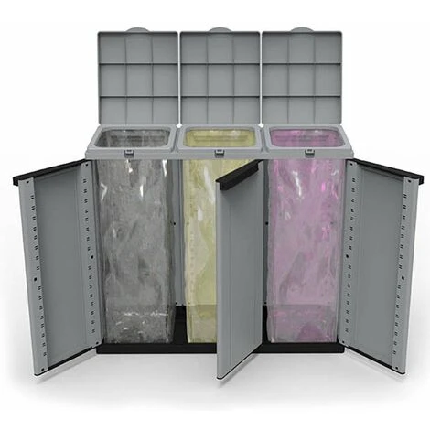 Armoire ecoline 3 102x39x88,7cm. 3 portes, couleur grise, ouverture frontale et supérieure, anneau porte-sac, convient aux sacs jusqu’à 110l, cadenassable.
