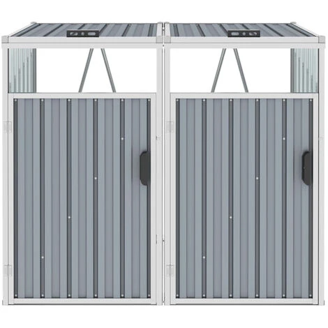 Cachez de vue vos poubelles dans le jardin et ajoutez une touche de propreté et de beauté à vos espaces extérieures avec notre abris de poubelle double ! Cet abri à deux poubelles est en acier galvanisé robuste, ce qui le rend très stable et facile à entretenir. Il est équipé de deux portes à ouverture individuelle à l’avant et de poignées de porte en plastique noir. Ainsi, les poubelles peuvent être facilement retirées et vidées. L’abri de stockage a deux couvercles individuels qui peuvent être ouverts pour déposer facilement les déchets. Cet abri pour poubelle est également facile à assembler.