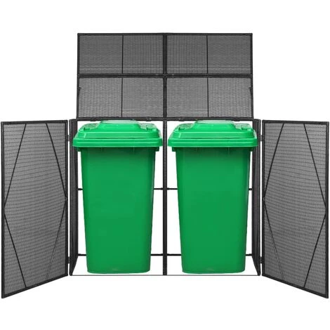 Ce cache-poubelles Ă roulettes est idĂ©al pour dissimuler vos poubelles dans le jardin. L’abri de stockage a des couvercles de levage, qui peuvent ĂŞtre ouverts pour un accès facile au conteneur pour dĂ©poser les ordures. Il a Ă©galement des portes qui s’ouvrent avec un système de verrouillage Ă l’avant pour que le bac puisse ĂŞtre facilement retirĂ© et vidĂ©. Il gardera Ă©galement les intrus Ă fourrure Ă distance. Cet abri Ă poubelle Ă roulettes, en rĂ©sine tressĂ©e, est très robuste, durable, rĂ©sistant Ă l’eau et Ă la pourriture. Ce rangement pour poubelle est parfait pour la dĂ©coration de votre jardin. Cet article est Ă©galement facile Ă assembler. Veuillez noter que les poubelles Ă roulettes ne sont pas incluses dans la livraison. Remarque : il est recommandĂ© de recouvrir le produit pendant la pluie, la neige ou le gel.