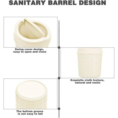 - HAUTE QUALITÉ – MatĂ©riau PP anti-âge portable, poubelle de bureau, couvercle pivotant en plastique de haute qualitĂ©, rĂ©sistant aux empreintes digitales et Ă la saletĂ©, lisse pour un nettoyage facile