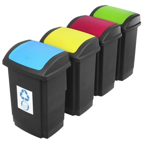 Les poubelles SWING sont recouvertes d’autocollants avec des symboles de dĂ©chets individuels (plastique, papier, verre, mĂ©tal).