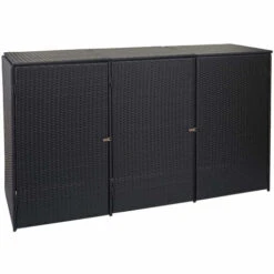 Enveloppement Pour 3 Poubelles HHG-261, Box Pour Poubelles, Revêtement, Polyrotin 2x120l ~ Noir