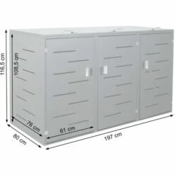 Cache Poubelle Tarbek 3 Places Avec Portes à Poignée 121 X 219 X 82 Cm Gris Anthracite [pro.tec]