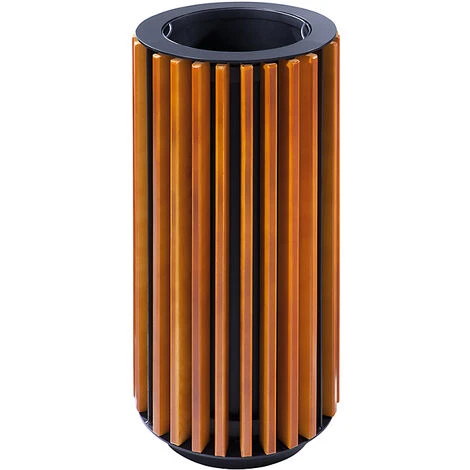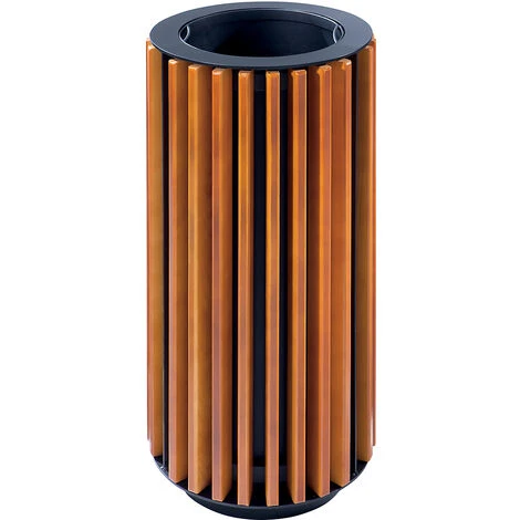 Ce collecteur de déchets au design moderne revêtu de lattes de bois élégantes est idéal pour l’extérieur, par exemple pour les aires de picnic ou de repos.Un conteneur en tôle d’acier ronde peinte époxy gris sert de seau intérieur, séparé du revêtement externe en bois. Le collecteur est muni d’alésages de montage pour ancrage au sol optionnel.La hauteur du collecteur de déchets est de 860 mm et le diamètre de l’ouverture de dépôt placée en haut est de 400 mm, sa capacité est de 50 litres.