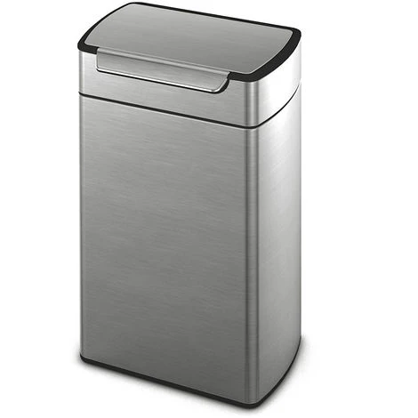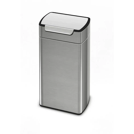 Collecteur de déchets moderne à fonction Touch pour une élimination aisée des déchets par simple contact de la main. Modèle peu encombrant placé contre un mur, dans les endroits très fréquentés.