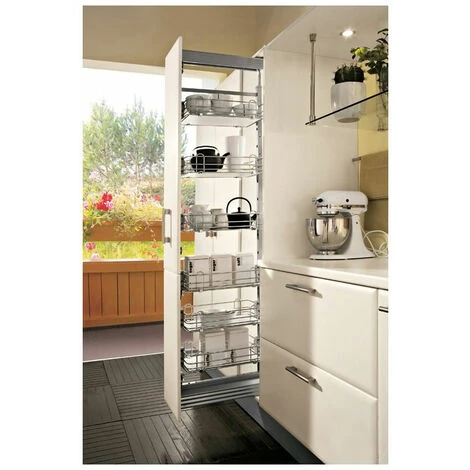 Armoire coulissante complète équipée de 5 corbeilles.