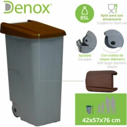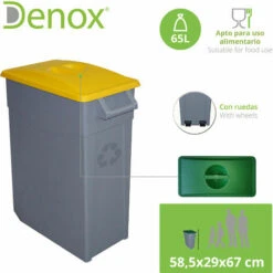 Paquet de recyclage avec un ensemble de conteneurs de recyclage scellés de 85 litresDes poubelles professionnelles et communautaires pour faciliter le recyclage des déchetsEmpilable et sur rouesDiamètre de la roue principale, ø 145 mm Dimensions (mm) : 420 x 570 x 760Capacité : 85L chacun.Au total, 2 poubelles de 85 litres chacune, de couleur vert/jaune.