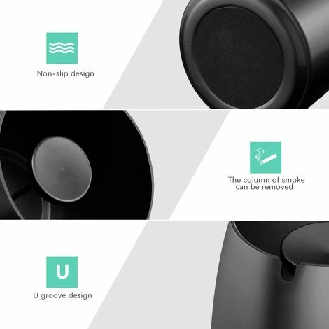 ECHOO Cendrier Avec Couvercle Cigarettes Cendrier Coupe-vent Cendrier Portable Pour IntéRieur Et ExtéRieur Avec Tapis Antidérapant Pour Restaurant Bar Maison Bureau (Noir-Petit)