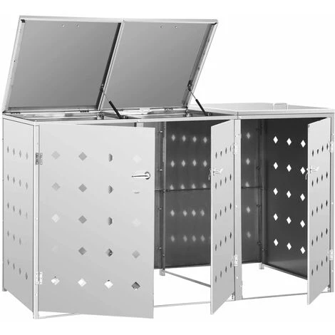 Conçu pour l’utilité, notre abri pratique à roulettes pour poubelle vous permet d’avoir le revêtement parfait pour une poubelle triple de 240 litres ou plus petite. Il garde la poubelle de votre jardin hors de votre vue et crée un environnement beau et propre. Fabriqué en acier inoxydable, l’abri à poubelle est extrêmement résistant aux intempéries et durable. Ces trous d’aération utiles permettent la circulation de l’air et empêchent les odeurs nauséabondes dans la poubelle tandis que le système de verrouillage garantit un stockage sûr des ordures. En outre, la porte pratique vous permet de mettre et de retirer facilement la poubelle. L’abri de poubelle est facile à nettoyer.