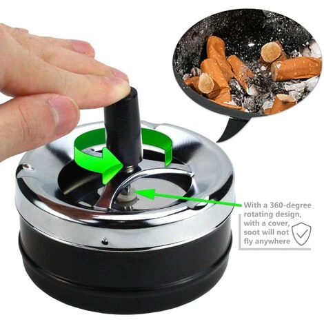【Cendrier avec bouton poussoir】le cendrier rotatif a une conception rotative à 360 degrés, ce qui est très pratique à utiliser. Vous pouvez verser de la poussière dans le cendrier en appuyant sur le bouton et en tournant le couvercle