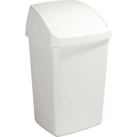 Poubelle en polypropylène avec couvercle à trappe basculante. Vidage par décochement de la tête. Capacité : 50 litres. Coloris blanc.