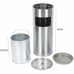 SKECTEN 30L Poubelle En Acier Inoxydable Avec Cendrier 60.5 X 24.5cm Argent