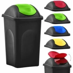Topdeal Poubelle Avec Couvercle Pivotant 60 L Noir Et Vert FF147325_FR