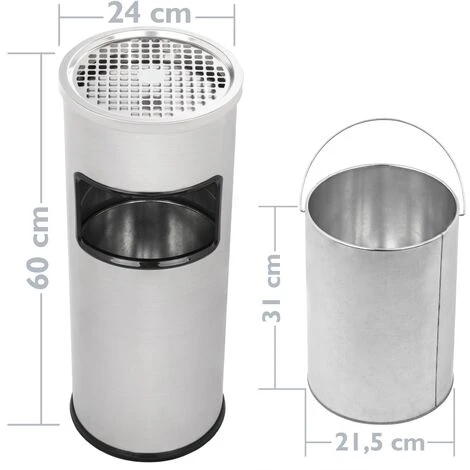 - Poubelle de forme circulaire, 24 x 60 cm (diamètre x hauteur), avec un cendrier séparé sur le dessus.