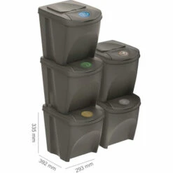 Prosperplast Lot De 5 Cubes De Recyclage 125 L Sortibox En Plastique Gris 5 X 25 L – Gris