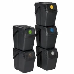 Prosperplast Set 3 Poubelles De Recyclage Avec Capacité De 75 Litres En Noir – Anthracite