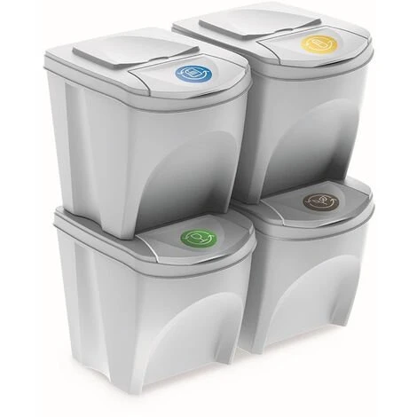Lot de 4 bacs de recyclage de 25 litres de couleurs assorties pour papier, verre, plastique et organique.Le papier, le verre, le plastique ou le métal récolté, soigneusement séparé des déchets municipaux avec l’utilisation de solutions et d’accessoires modernes, devient une matière première précieuse.Une attitude consciente, respectueuse de l’environnement et économique n’a que des avantages : elle influe sur la limitation des décharges et l’utilisation rationnelle des ressources naturelles, en réduisant la pollution de l’air et de l’eau, en économisant de l’énergie et en réduisant les coûts. Il est également pratique et hygiénique pour une utilisation de l’espace de rangement qui est si précieux à la maison.Sortibox répond non seulement à ces exigences, mais fournit également des capacités de classification continue. Bien conçu, esthétique et spacieux (4 x 25 L), avec une structure spécialement conçue pour les espaces restreints, facilitant la disposition des segments en rangées ou poteaux stables.Capacité : 100 (25 x 4) litres. Dimensions : 39,2 x 29,3 x 33,5 cm (unité) 39,2 x 29,3 x 131 cm (empilés). Couleur : blanc
