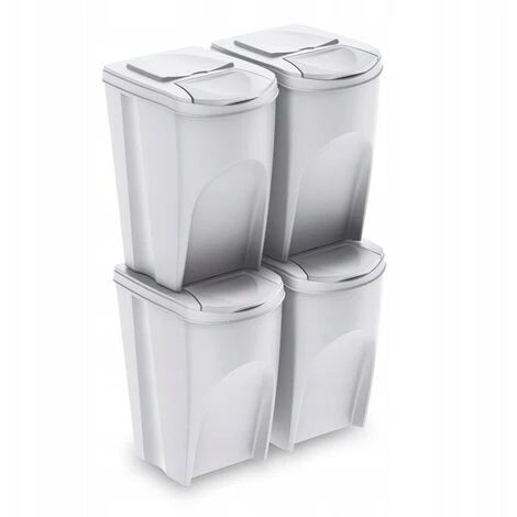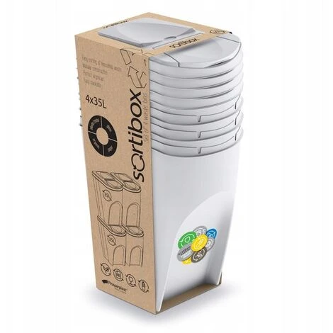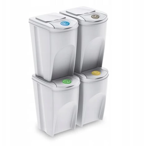 Lot de 4 bacs de recyclage de 35 litres de couleurs assorties pour papier, verre, plastique et organique.Le papier, le verre, le plastique ou le métal récolté, soigneusement séparé des déchets municipaux avec l’utilisation de solutions et d’accessoires modernes, devient une matière première précieuse.Une attitude consciente, respectueuse de l’environnement et économique n’a que des avantages : elle influe sur la limitation des décharges et l’utilisation rationnelle des ressources naturelles, en réduisant la pollution de l’air et de l’eau, en économisant de l’énergie et en réduisant les coûts. Il est également pratique et hygiénique pour une utilisation de l’espace de rangement qui est si précieux à la maison.Sortibox répond non seulement à ces exigences, mais fournit également des capacités de classification continue. Bien conçu, esthétique et spacieux (4 x 25 L), avec une structure spécialement conçue pour les espaces restreints, facilitant la disposition des segments en rangées ou poteaux stables.Capacité : 140 (35 x 4) litres. Dimensions : 39,2 x 29,3 x 45 cm (unité). Couleur : blanc