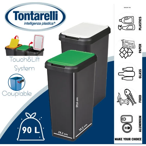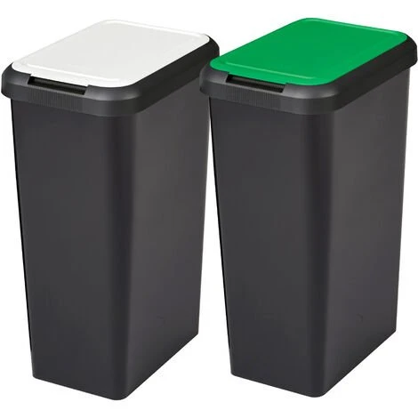 Pack 2 cubes à ordures avec capuchon tactile et ascenseur en couleur vert / blanc.• Dimensions: 29,2 x 39,2 x 59,6 cm.• Capacité totale: 90 litres.