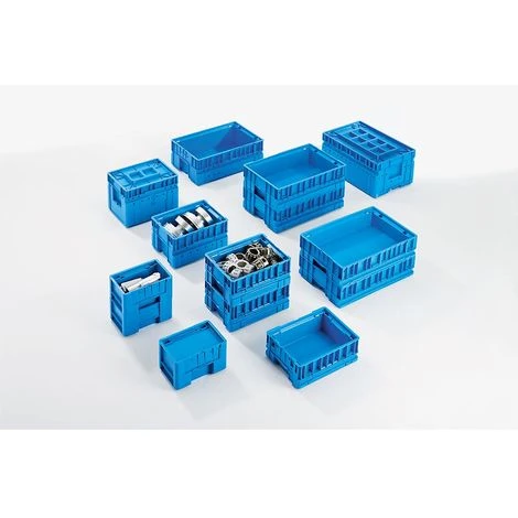 Bac en plastique à double paroi avec fond gerbable. Coloris bleu clair.