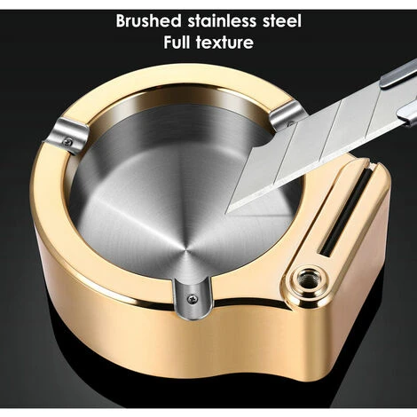 Cendrier de qualite Preminum: Le revetement est en acier inoxydable et traite par dessin en acier inoxydable, qui resiste aux rayures et a l’usure.La surface du cendrier est traitee sous vide et sa couleur brillante en fait une decoration moderne dans votre maison.